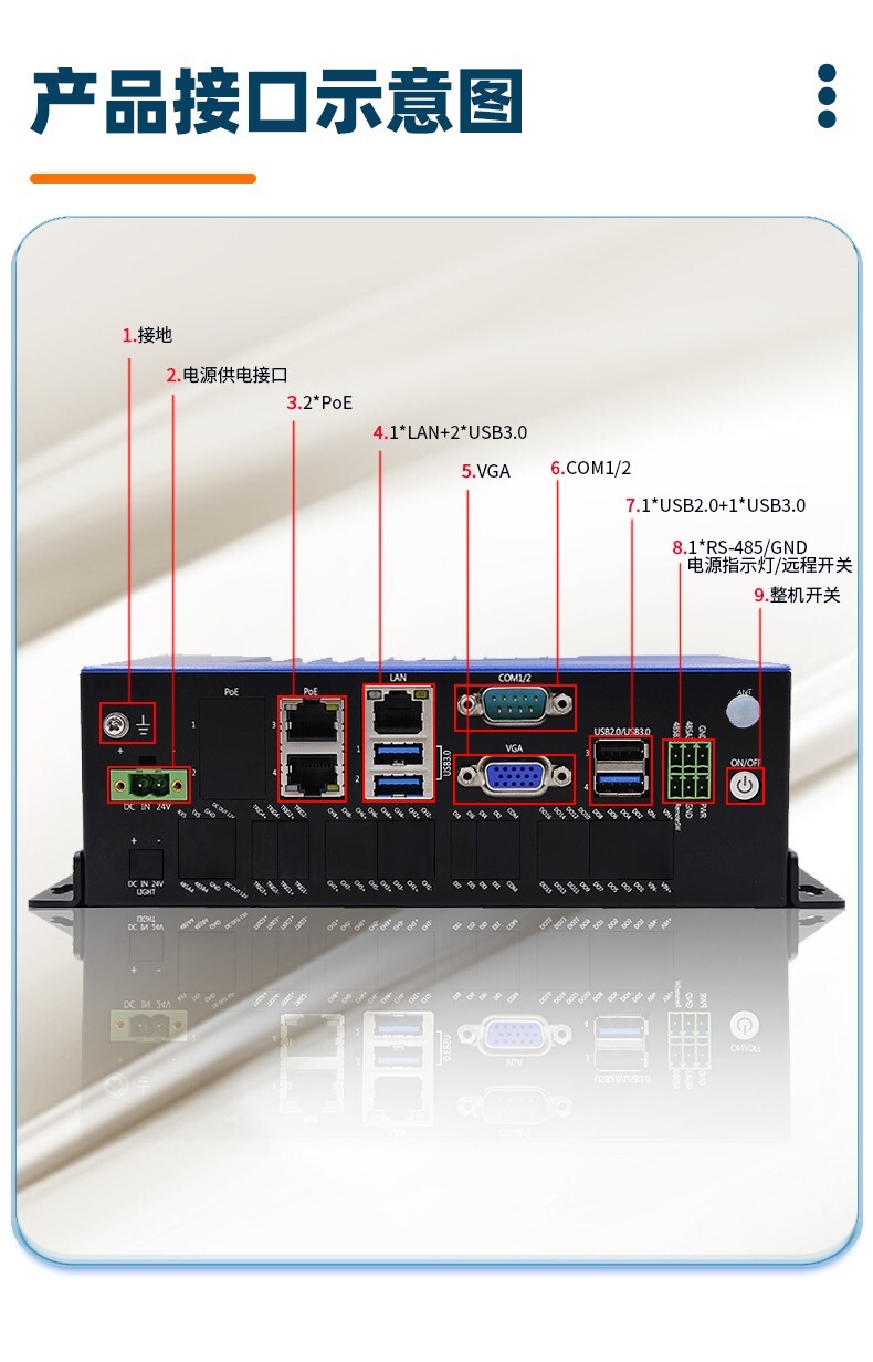 5. 3*Intel I225-AT 10/100/1000M網(wǎng)口,其中兩個(gè)支持PoE